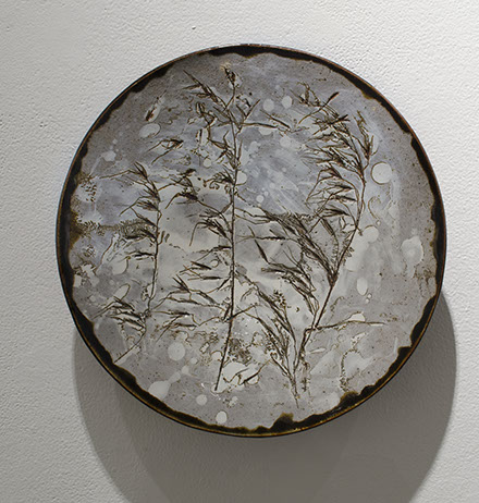 My work is solidly founded in functional ware. My interest in mathematics draws me toward geometric considerations and my interest in nature draws me toward textural considerations, both of which I combine to develop objects that can render a service. I aim to bring the beauty in nature into the daily routine via functional objects. My current line of work is inspired by the movement of grasses and leaves in the wind. I first create platters by combining wheel throwing and hand building techniques. Using these platters as foundations, I vary applications of slips, oxides and glazes to capture the flow of plants in a winter snow setting.
