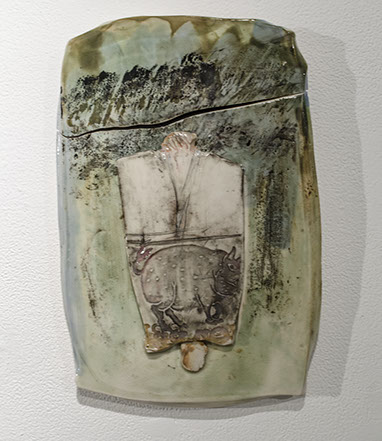 Catharsis through externalization of both personal and social issues is the driving force behind my work. The focus is to take whatever particular issues that are currently causing angst or vexation and dealing with them in a constructive manner, a type of venting that attempts to communicate with the audience through visual means that which I would never divulge directly to a stranger through verbal means. Traditional ceramic methods are often combined with unconventional surface treatments and mixed media. I view the clay structure as somewhat of a three-dimensional canvas, incorporating whatever other media I feel are most appropriate for each specific piece.