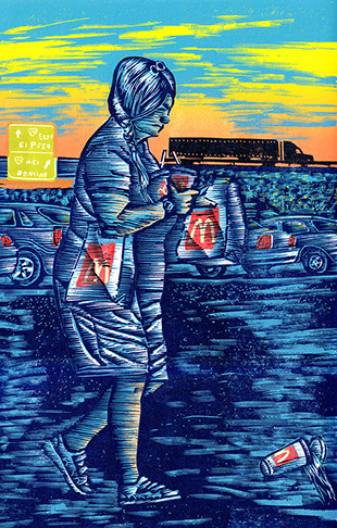 The focus of my work has always been to depict something about the American experience, no matter how ordinary, and to say it in an aesthetic manner. The enjoyment of color, composition and consideration of tactile surfaces all need to marry with the content. That being said, I sometimes will create a piece for its pictorial qualities in and of itself, sometimes for the technical challenge a visual idea may pose. Elements of the way things sound and smell are also meaningful to me. Visual images should bring about the “at onceness” experience that we all know and understand in an instance.