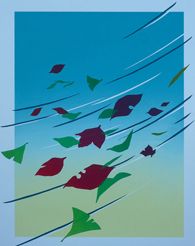 To show the beauty of the wind and leaves, I chose to print using silkscreen technique.