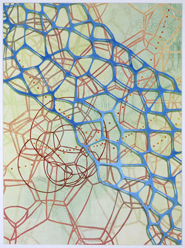 My work is created as a response to CP Snow’s call for a “third culture” to bridge art and science. Specifically, my work focuses on biological and sociological systems: DNA coding, cell division, often in juxtaposition to imagined map-like symbols depicting interconnected relationships. I see these symbols as diagrams of imagined space involving interaction, entanglement, memory and contemplation.